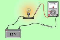 Če želimo električni tok izmeriti, ga moramo speljati skozi A-meter. V ta namen električni tokokrog najprej razklenemo in ga z vključitvijo A-metra v razklenjeni del spet sklenemo (animacija 2.2.4.1).