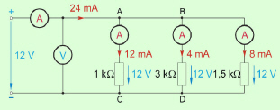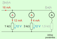 priključimo štiri porabnike (upore) z upornostmi 1 kΩ, 3 kΩ, 1,5 kΩ