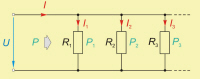 Skupna moč vzporednih porabnikov je enaka vsoti moči posameznih porabnikov.