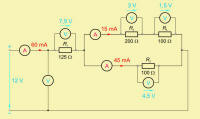 S splošnimi lastnostmi zaporednih električnih tokokrogov se najlažje seznanimo z merjenjem napetosti in tokov na praktičnem primeru.
