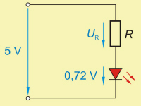 5 V= UR + 0,72 V=>UR = 5 V - 0,72 V = 4,28 V
