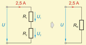 Na osnovi znane nadomestne upornosti zaporednih porabnikov izračunamo tok skozi porabnike: