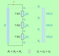 Slika 3.2.2.3.3.1: Delitev napetosti na zaporedne porabnike enakih upornosti