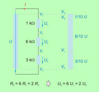 Slika 3.2.2.3.3.2: Delitev napetosti na zaporedne porabnike različnih upornosti