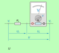2. Z V-metrom, katerega merilno območje je 50 V in notranja upornost RV