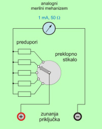 napetostna merilna območja v bistvu tako, da s preklopnikom