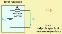Izhodna napetost obremenjenega izvora je manjša od napetosti neobremenjenega izvora za padec napetosti na notranji upornosti izvora.