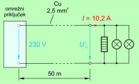 skupni tok je 10,2 A. Vodnika kabla sta bakrena s prerezom 2,5 mm2.