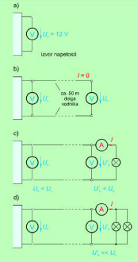 => Ko priključimo porabnik (sl. c), se napetost na sponkah