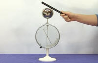 plošči postavimo večjo, votlo kovinsko kroglo, v kateri je