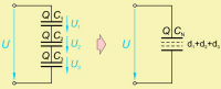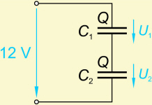 Pri zaporedno vezanih kondenzatorjih enakih kapacitivnosti velja: |