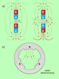 O pravokotnosti magnetnih silnic na površino magneta za začetek verjemimo magnetnim iglam. Kaj več bomo o tem lahko sklepali, ko bomo spoznali dejanski izvor magnetnega polja. Spoznali pa smo pomembno razliko med električnimi in magnetnimi silnicami. Prve imajo začetek in konec, druge pa so vase zaključene. Nekaj primerov poteka silnic magnetnih polj prikazuje sl. 5.1.1.2.2 a in b.