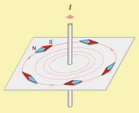 - Magnetne igle v nakazanem krogu spremenijo smer. |