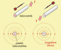 vodnik (sl. 5.1.1.3.1), postavimo okrog vodnika manjše vrtljive magnetne