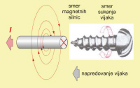 smer napredovanja vijaka enaka smeri toka v vodniku,