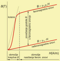 Grafični obliki odvisnosti gostote magnetnega pretoka od magnetne