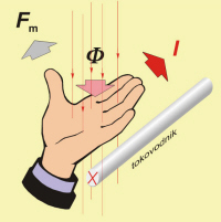 iztegnjeni palec smer magnetne sile na tokovodnik. |