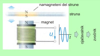 trajni magnet, ki del strune namagneti. Nihajoči magnetni del
