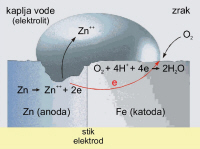 Slika 7.2.3.1: Elektrokorozija na stiku cinka in železa