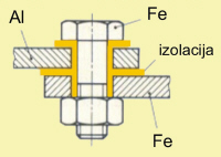 Kovinskim spojem, ki omogočajo elektrokorozijo, se izogibamo, ali pa korozijo preprečujemo.