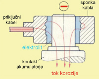 Elektrokorozija prizadene kovinske površine, iz katerih električni tok izstopa.